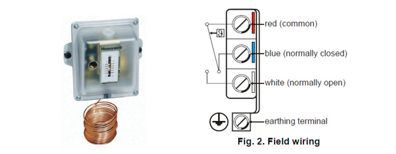 防冻开关是确保空调机冷热交换器不冻裂的报警装置,其有一细管贴在空调机交换器上,当冬天温度下降到设定温度时(一般4~50C)即细管中液体收缩拉动膜片,使微动开关闭合(或松开)进行报警。
